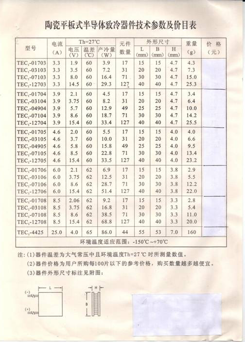 TEC系列半導(dǎo)體致冷組件有什么規(guī)格,參數(shù)如何?