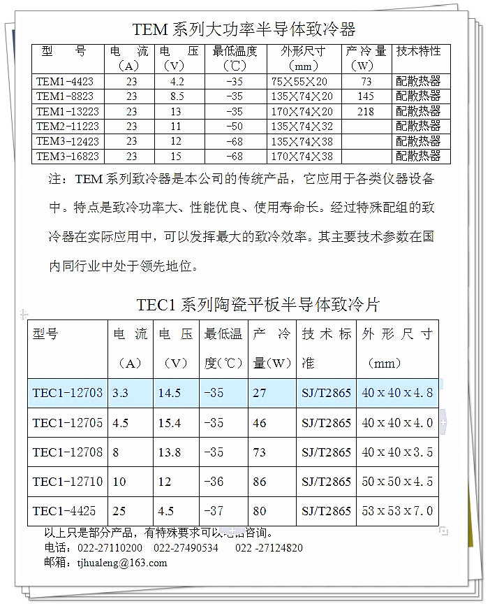 TEM系列半導體致冷器2016-09-26